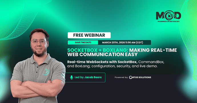 Join Jacob Beers as he explores how SocketBox enables you to create secure, high-performance, real-time WebSocket applications on the JVM with BoxLang. Learn practical patterns for building scalable, event-driven systems designed for modern applications.